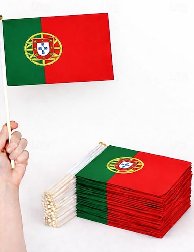 Bandeirinhas de Portugal para jogos da Copa do Mundo de Futebol, 50 bandeirinhas, 14 metros (46 pés), pequenas bandeirinhas portuguesas para decoração de festas, escolas, eventos esportivos e muito mais.