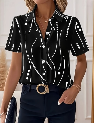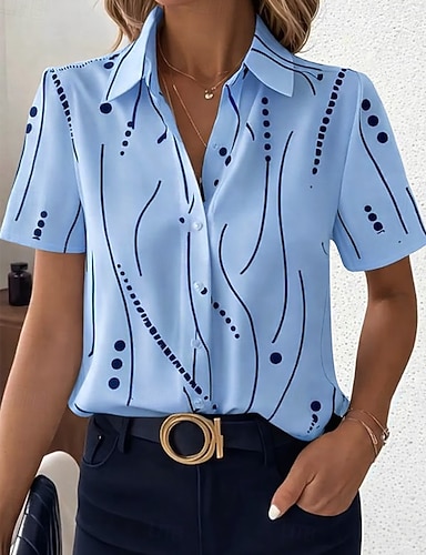 Mulheres Camisa Social Camisas de algodão e linho Blusa Botões Tecido à moda Clássico Moderno Manga Curta Decote V Tops regulares Diário Feriado Para Noite Branco Rosa Verde Azul Claro Verão Primavera