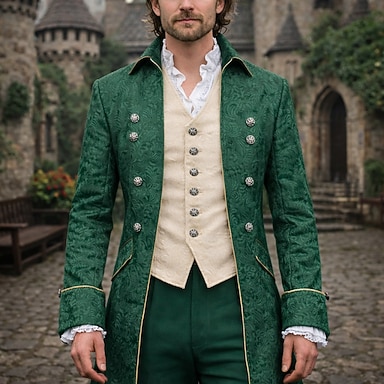 Natal Vintage Moda Casaco Baile de Máscara Colete Príncipe Drogador da praga Nobre Jacquard Jacquard Fantasia Homens Real Steampunk Dia Das Bruxas Carnaval Baile de Máscaras Festa / Eventos Adulto