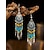Brincos femininos de turquesa estilo boêmio – joias vintage de estilo ocidental com detalhes de penas e contas para festas, festivais e uso casual