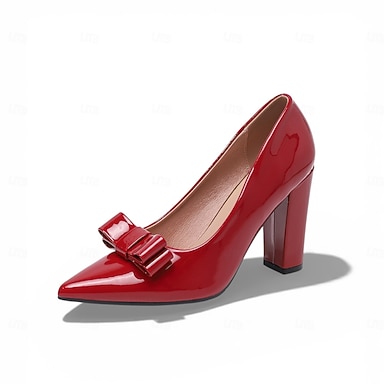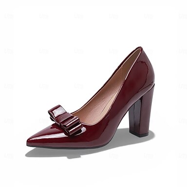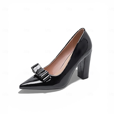 saltos altos femininos de couro sintético envernizado – scarpins de bico fino com laço, saltos gatinho elegantes para escritório e ocasiões formais