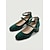 Sapatos de salto baixo femininos verdes vintage em couro sintético com detalhe de fivela – elegantes sapatos de salto baixo para o Dia de São Patrício, calçado festivo para a ocasião.