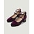Sapatos Mary Jane de veludo com salto bloco, bico redondo e tira dupla, ideais para festas no jardim e casamentos. &eventos diurnos