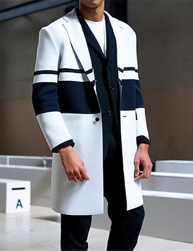 Homens Listra Casaco de inverno Casaco Manter Quente Confortável Respirável Moda Roupa de rua Negócio Trabalho Vestir para trabalhar Para Noite Bolsos Imprimir Outono & inverno Aberto para a Lateral