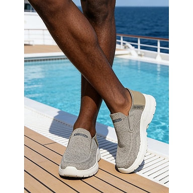 Tênis masculino slip-on de malha – calçado casual para ilha e cruzeiro, leve e respirável, ideal para viagens e resorts.