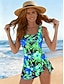 Maiô Feminino Saia de Palma Elegante Moda Praia Gráfico Floral U Neck Sem Mangas