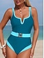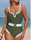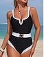 Maiô Feminino 1 Peça Emagrecido Colorblock Monokini Costas Núas Controle de Barriga Cintura Alta Magro Roupas de Praia Vintage Gráfico Geométrico U Neck Sem Mangas