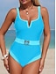 Biquíni Feminino 2 Peças Maiô Arame Cheeky Controle de Barriga Cintura Alta Slim Costas Descobertas Roupas de Praia para Férias Cor Sólida V Neck Sem Mangas