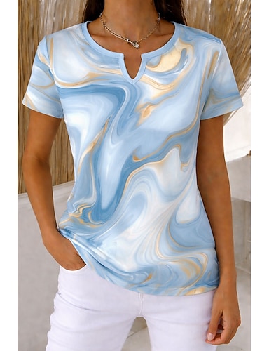 Mulheres Camiseta Imprimir Gráfico impressão de mármore Vintage à moda Clássico Manga Curta Pescoço Entalhado Tops regulares Diário Final de semana Azul Rosa Azul Céu Verde Verão Primavera