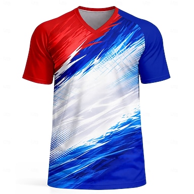 Homens Geométrica Gradiente França Verão do Futebol Partida Global Top de corrida Camiseta de Corrida Verão Manga Curta UPF 50 Secagem Rápida Respirável Academia Track Ginástica Azul Roupa de esporte