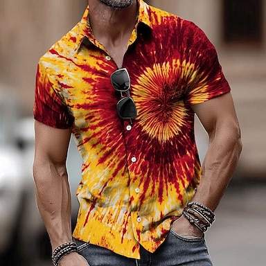 Homens Hippie Impressão Tie Dye Camisa Social camisa de botão Manga Curta Moda Casual Streetwear Férias Verão Primavera Aberto para a Lateral Impressão 3D camisas de colarinho Azul Rosa Vermelho Roxo