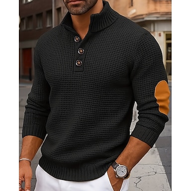 Homens Moletom Estacionar Preto Henley Bloco de cor Jacquard Desportos e Ar livre Casual Diário Roupa de rua Roupa de Esporte Casual Outono Inverno Roupa Moletons Moletons