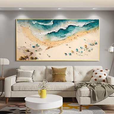 Pintura a óleo artesanal em tela decoração de arte de parede original seascape pintura abstrata do oceano para decoração de casa com moldura esticada/sem pintura de moldura interna