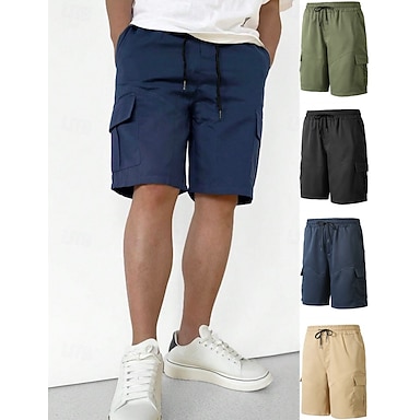 Homens Calças de carga Bermuda Cargo Calção Shorts casuais Com Cordão Bolsos Cintura elástica Tecido Conforto Respirável Curto Casual Ao ar livre Praia Férias Moda Azul Preto Sem Elasticidade