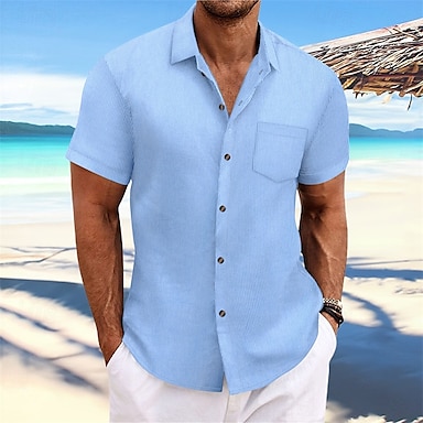 Homens Camisa Social camisa de botão Camisa casual Amarelo Rosa Azul Azul Céu Roxo Manga Curta Tecido Lapela Rua Férias Básico Roupa Moda Lazer
