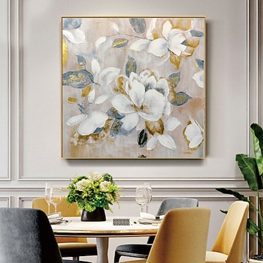 Pintura a óleo artesanal pintada à mão quadrada arte de parede impressão flores pintura em tela decoração de casa quadro esticado pronto para pendurar