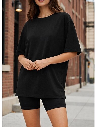 Mulheres Extra Grande Camisetas Camiseta esportiva Côr Sólida à moda Clássico Casual Manga Curta Gola Redonda Decote Redondo Tops longos Diário Ginásio Esportes Preto Verão Primavera