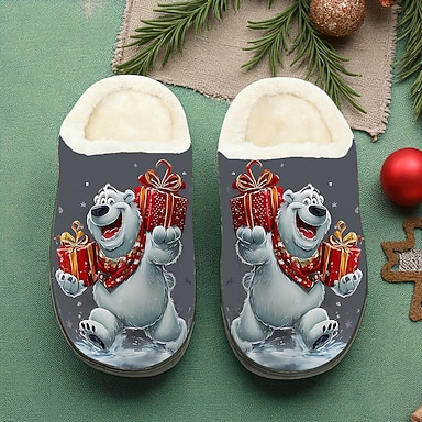 Pantufas natalinas masculinas divertidas - pantufas de pelúcia quentinhas com estampa de coelho fofo, perfeitas para a véspera de Natal, relaxar em casa e presentear.