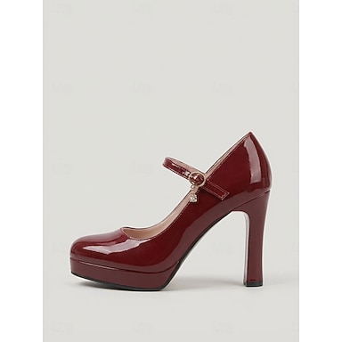 Sapatos femininos vermelhos de verniz com plataforma, estilo Mary Jane, bico redondo e tira, ideais para convidadas de casamento e casamentos no jardim. &eventos formais