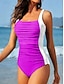 Maiô Feminino Monokini Afinador Colorblock Corte Alto Costas Nu Controle de Barriga Cintura Alta Slim Roupas de Praia para Férias Gráfico Geométrico Decote U Sem Mangas