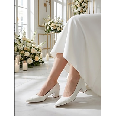 Sapato feminino branco de salto alto com bico fino e tira em T com laço – elegante sapato de noiva para casamento na cidade. &cerimônias religiosas, perfeitas para noivas e convidados de casamento