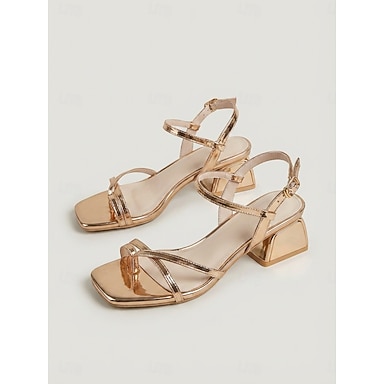 Sandálias femininas douradas com salto bloco metálico - sapatos elegantes para festas de coquetel