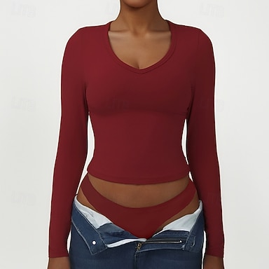 Mulheres Cor Sólida Camisa de tênis Fashion Pavio Humido Respirável Tênis Pickleball Corrida Camisa Inverno Preto Vinho Vermelho Roupas de tênis