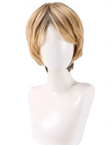 Peruca curta loira masculina de Silent Hill 2 peruca loira reto para homens cabelo masculino sintético resistente ao calor para uso diário perucas de Halloween
