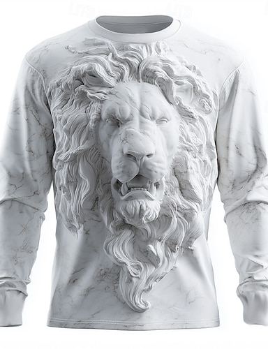 Homens 3D impressão Leão Camiseta Manga Longa Camiseta Impressão 3D Gola Redonda Camisa Moda Exagerado 3D Diário Rua Branco Branco 2 Verão Primavera Outono Roupa S M L XL XXL XXXL