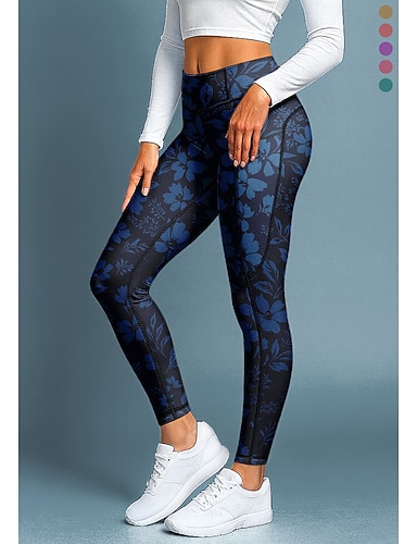 Mulheres leggings de pilates Calças de fitness Leggings casuais Bolsos Imposto de selo Patchwork Pilates Academia Treino de Ginástica Calças Meia-calça Leggings Bloco de cor Floral Estampa floral
