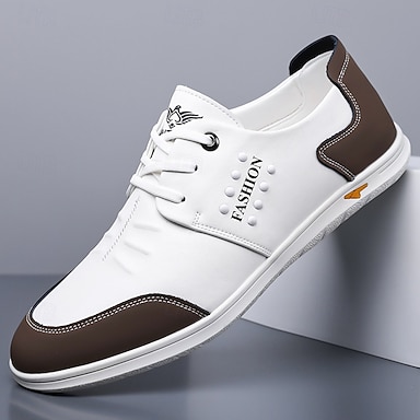 Tênis masculino branco casual com cadarço – tênis leves e confortáveis para uso diário, viagens e atividades ao ar livre.