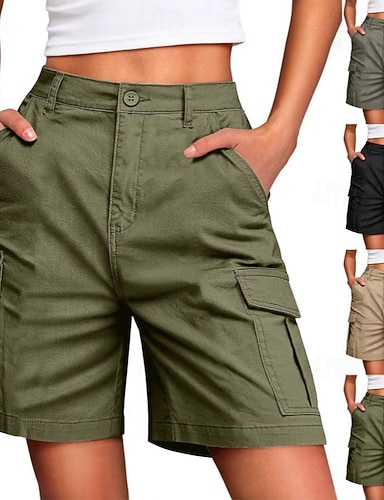 Mulheres Bermudas Atrevido Calção Férias Básico Casual Comprimento do joelho Cintura Média Tecido Bolsos Cintura elástica Confortável Conforto Sem Elasticidade Diário Ao ar livre Rua Cinzento Claro