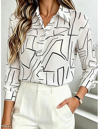 Mulheres Camisa Social Blusa Patchwork Botões Imprimir Gráfico Geométrica Xadrez Vintage Tropical Diário Manga Longa Colarinho de Camisa Tops curtos Casual Diário Branco Padrão Arco-íris Verão