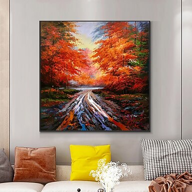 pintura a óleo artesanal lona decoração da arte da parede paisagem pastoral europeia cenário maple floresta para decoração de casa rolou sem moldura pintura não esticada