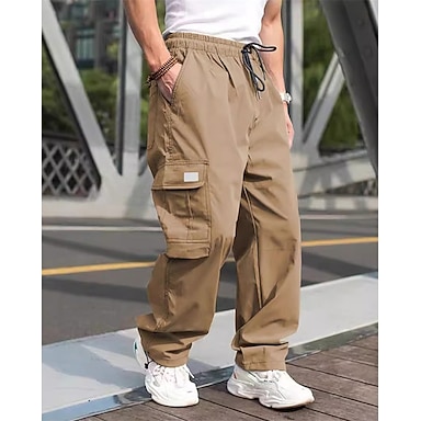 Homens Calças Cargo Calças Perna larga Bolso multi Tecido Vestível Ao ar livre Diário Acampar e Caminhar Moda Clássico Preto Cáqui