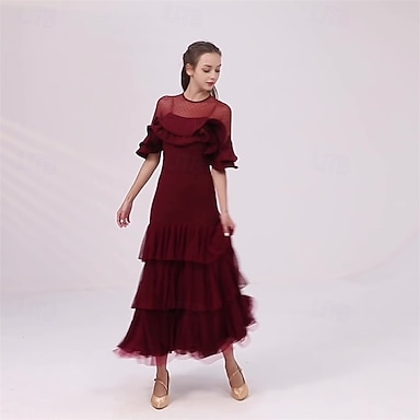 Dança de Salão Vestido Pregas Fru-Fru Recortes Mulheres Festa Treino Espetáculo Manga Curta Elastano Poliéster