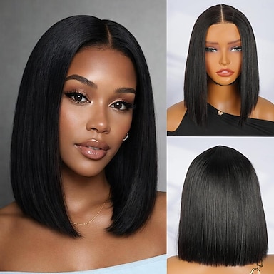 Peruca bobo curta 2x6 de cabelo humano brasileiro, cor natural, com densidade de 180%, para mulheres negras.