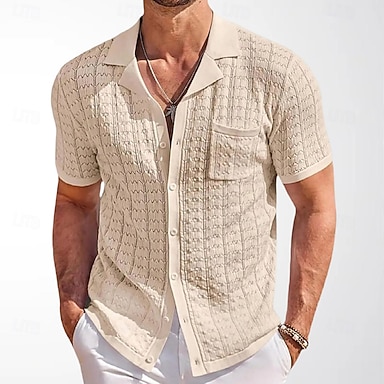 Homens Saia camisa de botão Tecido Casamento Férias Preto Branco Verde Claro Vinho Manga Curta Aberto para a Lateral Verão Roupa