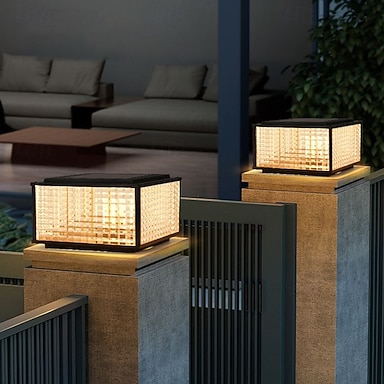 Luminária de poste solor externa LED à prova d'água, lâmpadas de pilar para pátio, varanda, pátio externo, deck, garagem, quintal, poste externo, lâmpadas de lanterna