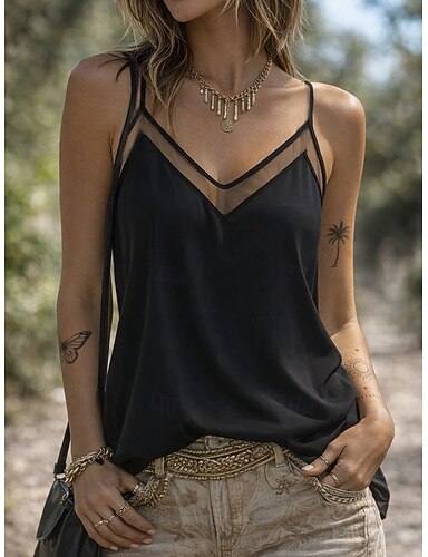 Mulheres Malha Íntima Com Transparência Frente Única Tecido Moda à moda Clássico Sem Manga Decote V Tops regulares Diário Para Noite Final de semana Preto Branco Verão Primavera