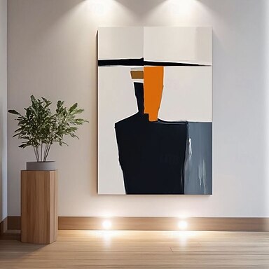 Pintura artesanal em blocos de cores laranja e preto, pintura abstrata laranja com textura, arte minimalista laranja, pintura abstrata preta, arte de parede com textura preta, quadro para decoração de