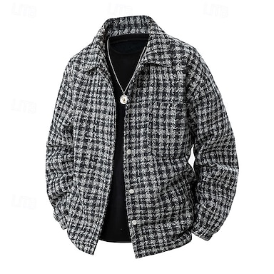 Homens jaqueta leve Jaqueta casual Férias Diário Manter Quente Bolsos Outono Inverno Xadrez Moda Clássico Lapela Padrão Preto cáqui Cinzento Casaco