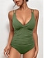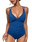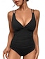 Maiô Feminino Uma Peça Emagrecente Plissado Sexy Recortado Com Arame Monokini Costas Nuas Controle de Barriga Cintura Alta Slim Férias Praia Vestuário de Cor Sólida V Decote Sem Mangas