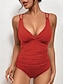 Maiô Feminino Uma Peça Emagrecendo Franzido Com Arame Colorido Monokini Controle de Barriga Cintura Alta Slim Sem Costas Roupas de Praia para Férias Cor Sólida Decote em V Sem Mangas