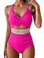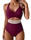 Maiô Feminino Slimming Colorblock Monokini Controle de Barriga Cintura Alta Slim Costas Descobertas Roupas de Praia para Férias U Neck Sem Mangas