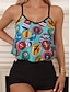 Tankini Feminino 2 Peças Maiô com Saia Palm Boy Leg Controle de Barriga Cintura Alta Slim Costas Nuas Praia de Férias Floral V Neck Sem Mangas