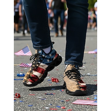 Tênis Tricô com Estampa da Bandeira Patriótica – Sapatos Casuais Slip-On para o Dia da Independência Festivais e Roupas do Dia a Dia