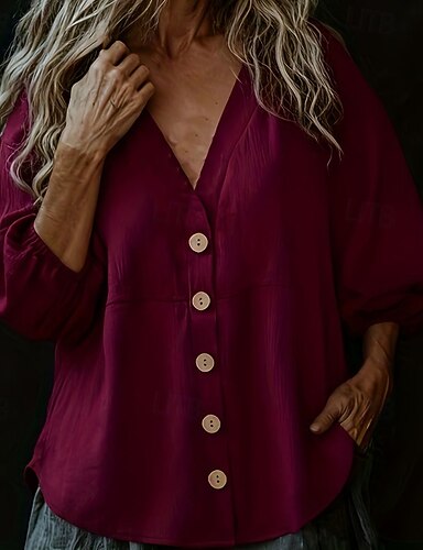 Mulheres Camisas de algodão e linho Blusa Botões Tecido Elegante Vintage à moda Manga Longa Decote V Tops regulares Diário Feriado Para Noite Vinho Verão Primavera Outono