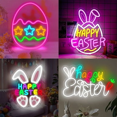 Letreiros de neon em formato de coelhinho da Páscoa, com intensidade regulável e alimentação USB, luzes de neon coloridas para decoração de interiores, sala de estar, quarto, festa e parede. Presentes