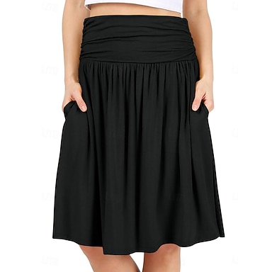 Mulheres Cor Sólida Saia casual Saias de tênis com shorts Saia Esportiva Sem Manga Pregueado Bolsos Cintura Alta Elástico Redutor de Suor Respirável Tênis Golfe Pickleball Saias Falta Preto Vinho